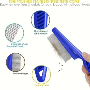 Pack of 4 Flea and Lice Combs, Stainless Steel Rabbit Dog Cat